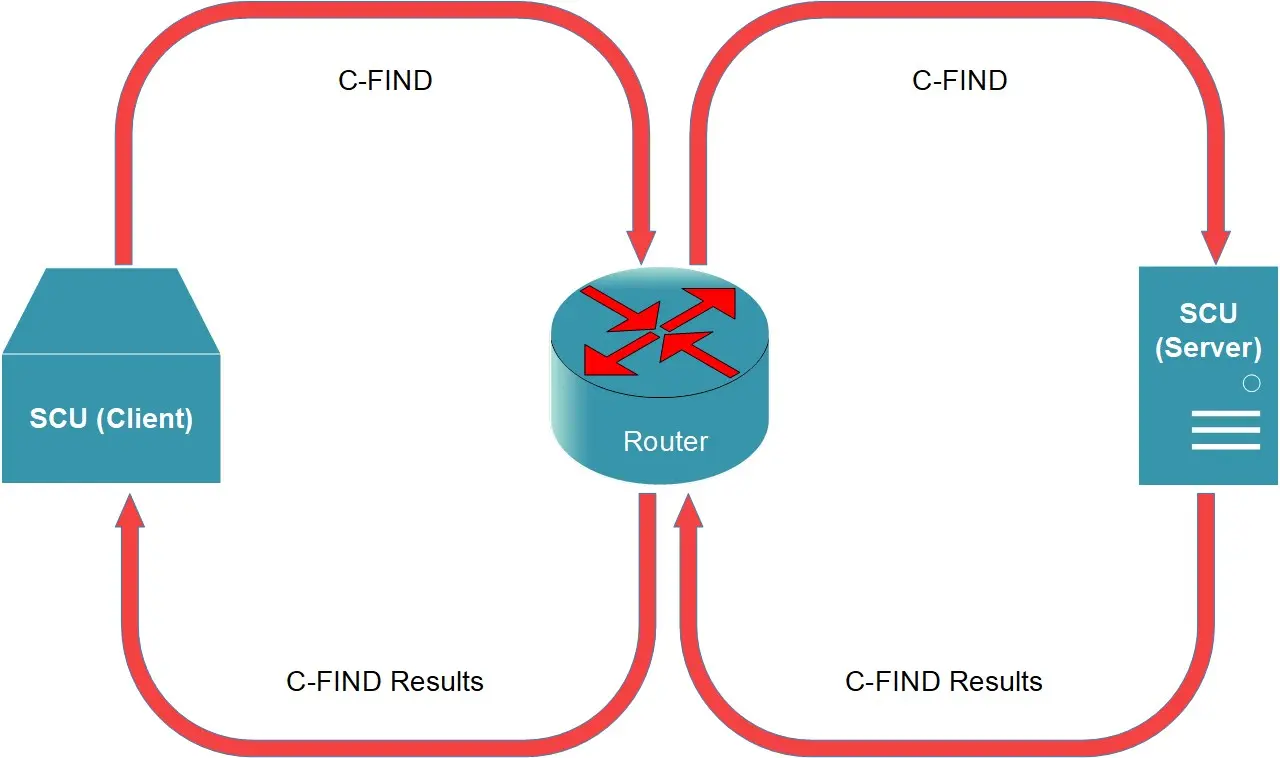 This is the most complex one, as it requires both Server and Router to do MOVE Destination AET lookup. Client must be listening on the correct port number associated with its AET, which is stored in Router’s AET lookup table. Router must be listening on the correct port number associated with its AET, which is stored in Server’s AET lookup table.