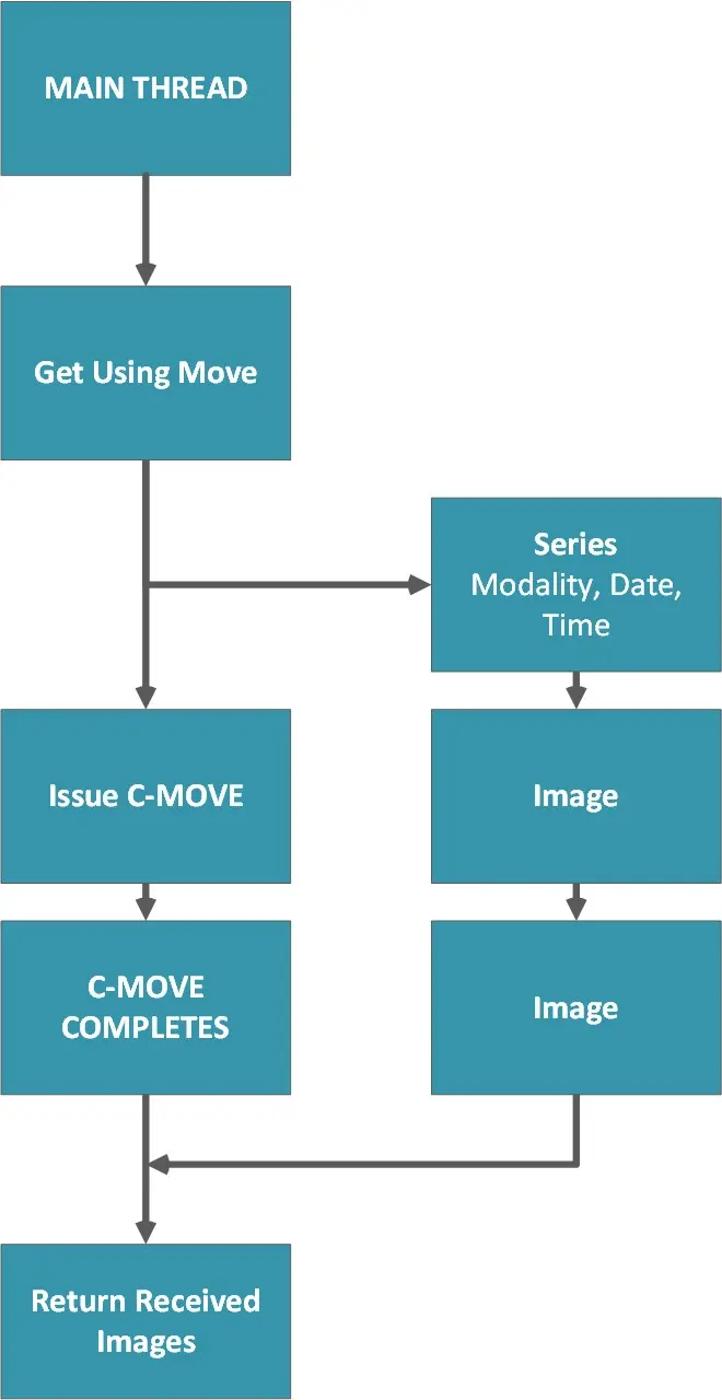 Following picture shows the threads (the main one and a new one created by DicomObjects) involved in GetUsingMove: